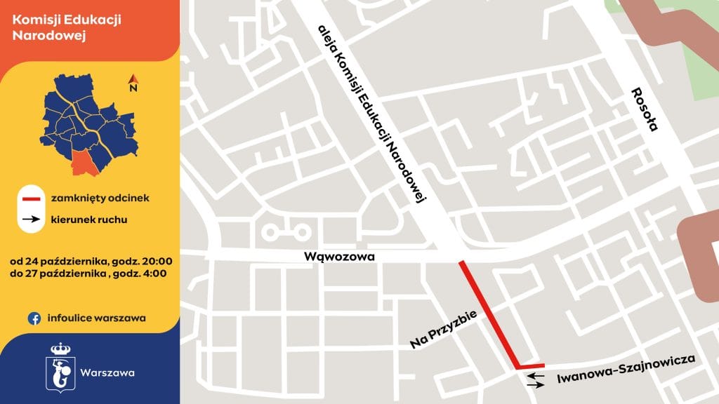 Nowy asfalt pojawi się również w alei Komisji Edukacji Narodowej, na odcinku między ulicami Wąwozową i Iwanowa-Szajnowicza. Na czas prac jezdnia w obu kierunkach zostanie zamknięta.