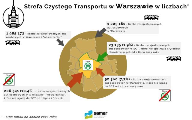 23 tys. 23 aut zarejestrowanych w planowanej w Warszawie Strefie Czystego Transportu – nie będzie mogło się po niej poruszać – wynika z danych Instytutu Badań Rynku Motoryzacyjnego Samar.