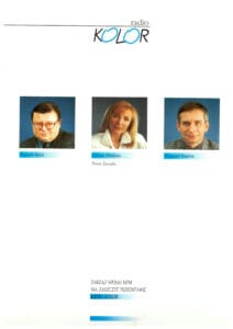 i aktualnymi pracownikami Radia Kolor. Przeszperałem setki dokumentów, zdjęć, archiwalnych materiałów prasowych, nagrań. Słowem – spróbowałem dotrzeć do jak największej liczby faktów, potwierdzić jak najwięcej dat. Niewykluczone jednak, że gdzieś mogłem popełnić błąd. Będę wdzięczny za kontakt, wszelkie materiały i informacje, które pomogą nam odtworzyć naszą historię w jak największym stopniu.