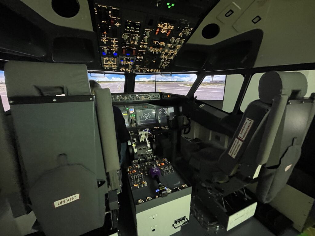 Symulator, to ważny rekwizyt edukacyjny. Uczelnia nie szkoli pilotów, a przyszłych inżynierów lotnictwa, poprzez zapoznanie ich z systemami pokładowymi. Kokpit jest repliką prawdziwego kokpitu Boeinga 737. Z oryginalną instrukcją można przejść procedurę uruchomienia, aż do startu samolotu.