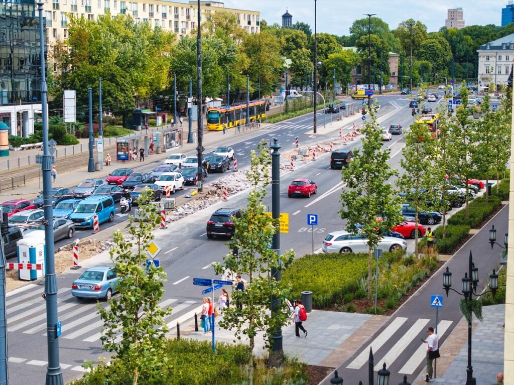 Trwa kolejny etap robót związanych z „rozbetonowaniem” placu Bankowego. Zamiast asfaltowej, liczącej 150 metrów, wyspy pomiędzy pasami ruchu pojawi się pas zieleni, w tym drzew.