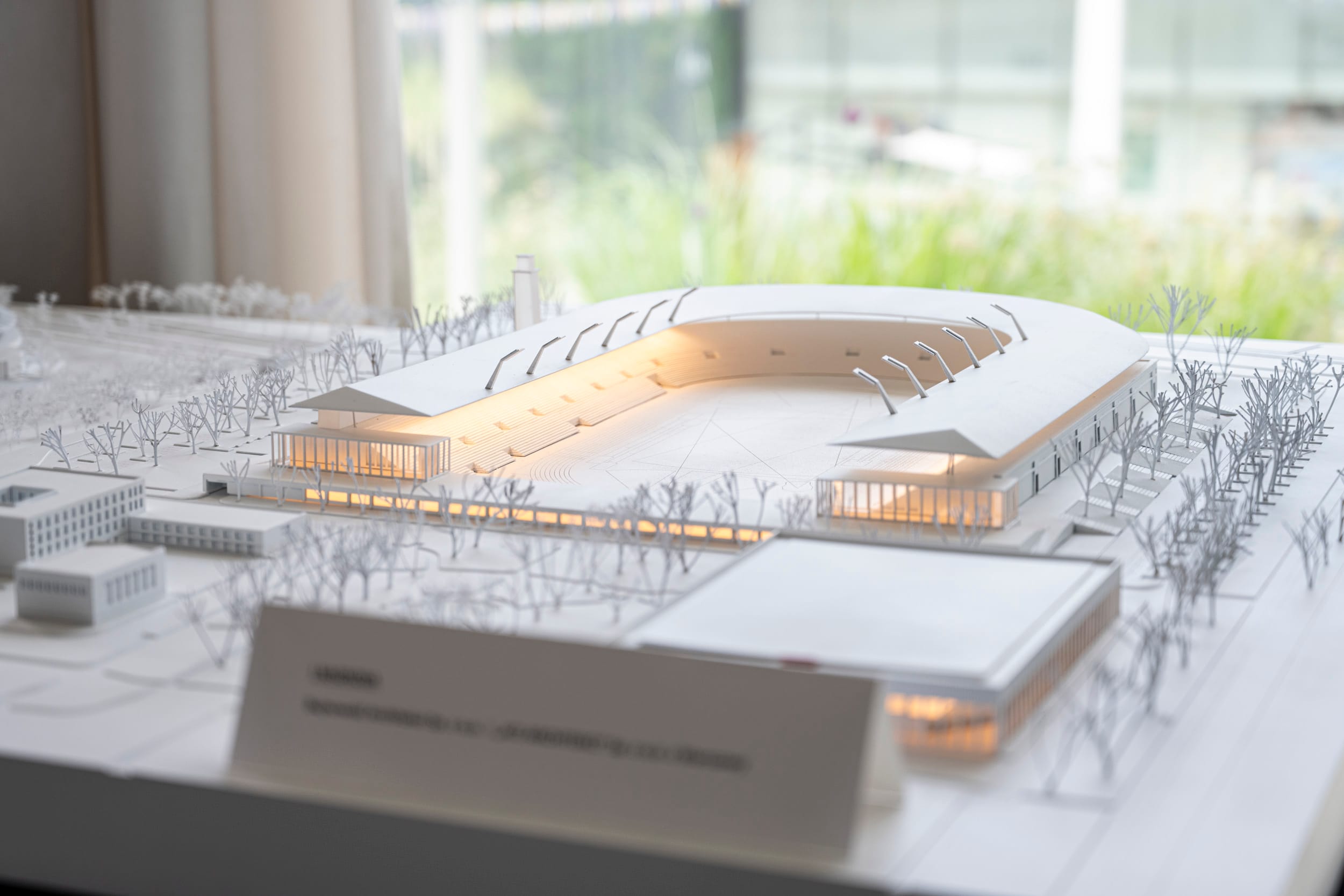 Przy wejściu na nową trybunę pojawi się zielony klomb z drzewami, krzewami ozdobnymi i iluminacją, który stanie się nową wizytówką obiektu. Architekci zadbali także o pielęgnację istniejącej zieleni i dodatkowe nasadzenia.