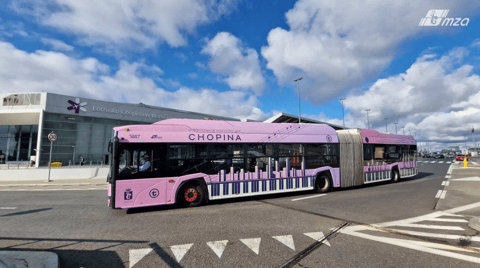Autobus, utrzymany w charakterystycznych różowo-fioletowych barwach, ozdobiono hasłem „W Warszawie wszystko gra Chopina”. Podobnie jak w tramwaju i metrze, na jego podłodze pojawiają się fortepianowe klawisze, a na karoserii – nuty i herb stolicy.
