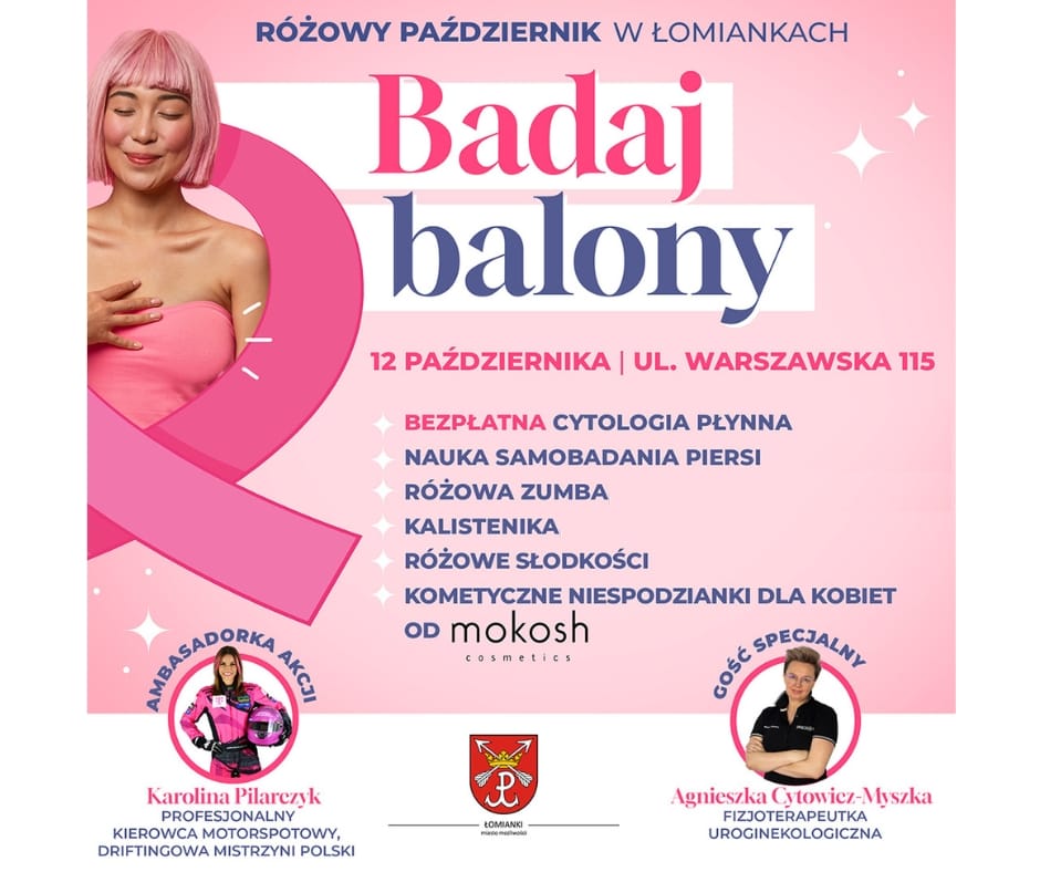 Łomianki będą badać balony. W niedzielę, 12 października, na placu przed Urzędem Miejskim powstanie różowa strefa zdrowia. Na miejscu kobiety będą mogły wykonać bezpłatną cytologię i porozmawiać z ekspertami. Akcja skierowana jest do mieszkanek gminy Łomianki.
