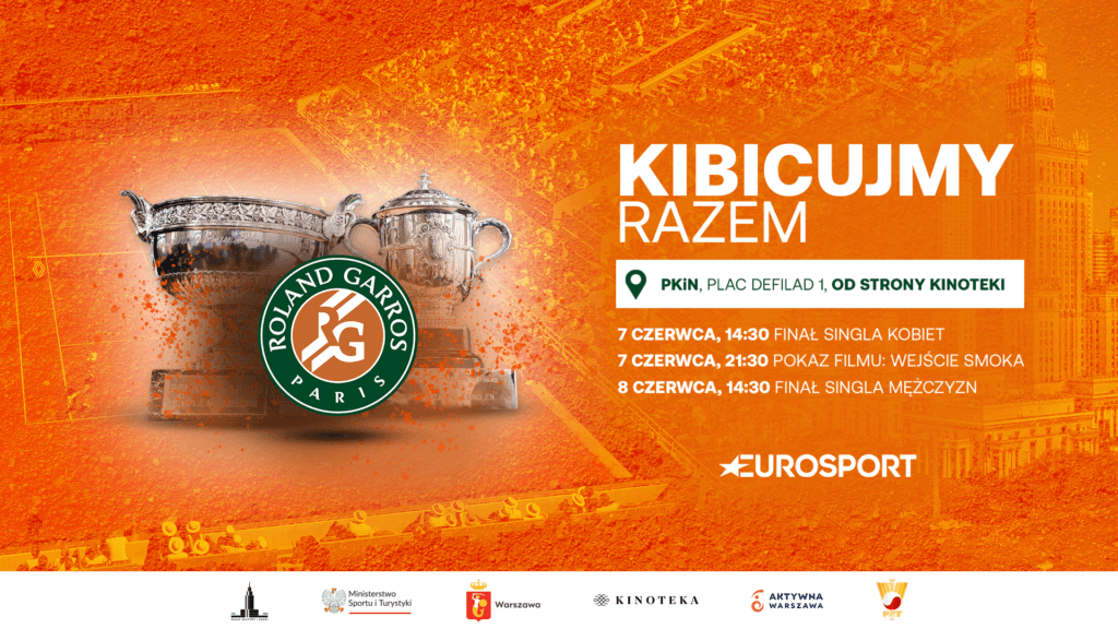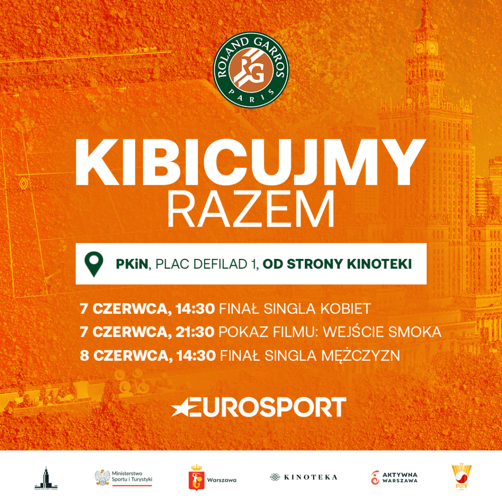 W najbliższy weekend na Placu Defilad przy Kinotece, powstanie specjalna strefa kibica, w której transmitowane będą mecze finałowe turnieju Rolanda Garrosa. Początek w sobotę od 13:00.