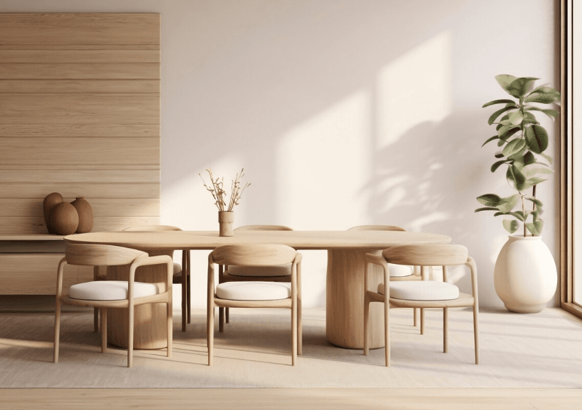 Paleta barw japandi to neutralne tony – beże, kremy, szarości i akcenty ciemnej zieleni czy czerni. Kolory mają uspokajać i tworzyć harmonijną przestrzeń, a nie dominować. Rośliny doniczkowe w prostych osłonkach dodają wnętrzu życia i podkreślają bliskość z naturą. Bonsai, zamiokulkas czy sansewieria będą pasować idealnie. Rośliny warto umieścić w miejscach, które naturalnie przyciągają wzrok, nie należy przesadzać z ich nadmiarem – wystarczy kilka starannie dobranych egzemplarzy, które wprowadzą świeżość i równowagę.