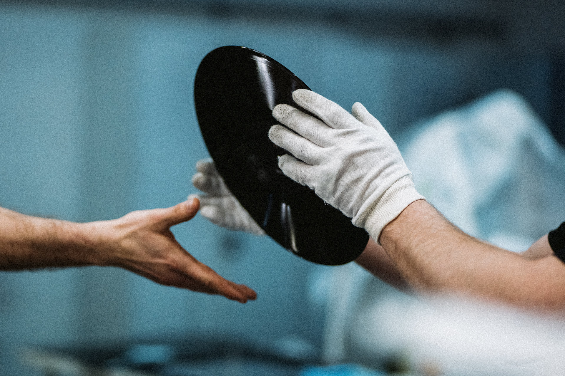 Po przygotowaniu wszystkich elementów projektu następuje proces tłoczenia. XDISC korzysta z zaawansowanych maszyn tłoczących, które zapewniają najwyższą jakość i precyzję. Tłoczenie to etap, gdzie fizyczna kopia muzyki jest w końcu przenoszona na winyl.