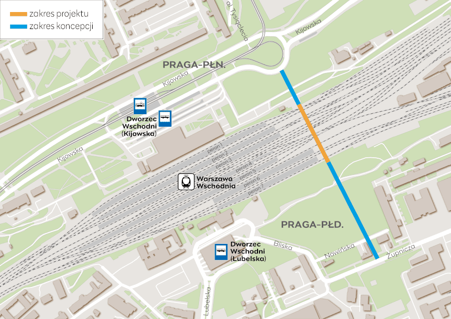 Stołeczny Zarząd Rozbudowy Miasta podpisał z firmą Torprojekt umowę na projekt budowlany tunelu pod torami kolejowymi w ciągu ulicy Tysiąclecia, a także opracowanie koncepcji tej trasy od ulicy Żupniczej do ulicy Kijowskiej. Inwestycja ma zostać wykonana na mocy porozumienia Warszawy z PKP PLK, które modernizuje linię średnicową i przebudowuje stację Warszawa Wschodnia. To właśnie przy okazji tych prac ma powstać także tunel łączący dwie Pragi.