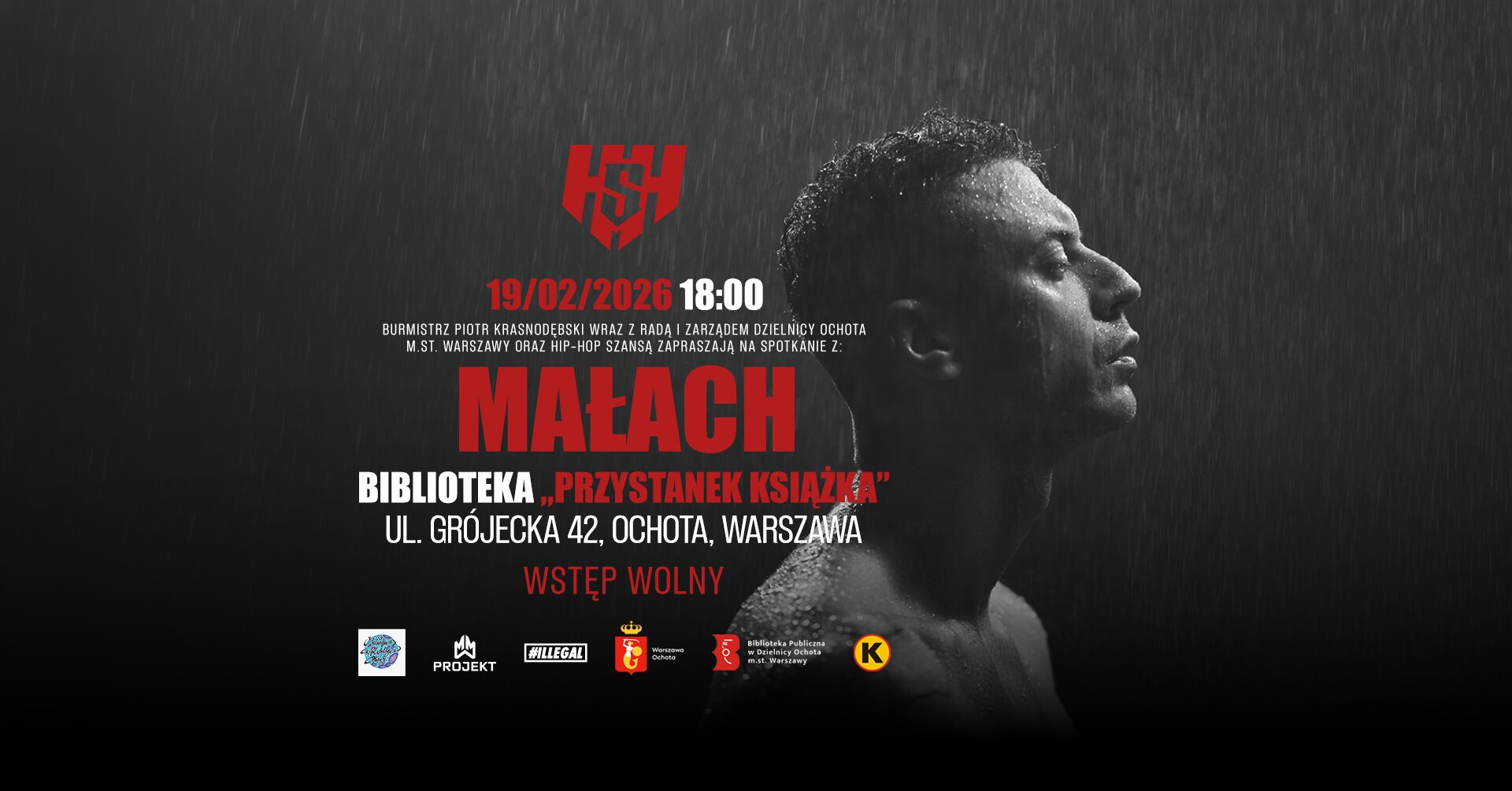 Ochota zaprasza na kolejne wyjątkowe wydarzenie w ramach spotkań hip-hopowych. Już 19 lutego 2026 roku odbędzie się otwarte spotkanie z Małachem – jednym z najbardziej autentycznych i konsekwentnych artystów polskiej sceny hip-hopowej. Wieczór pełen szczerych rozmów, emocji i hip-hopowej energii poprowadzi Szman82, dobrze znany słuchaczom i fanom kultury rap.