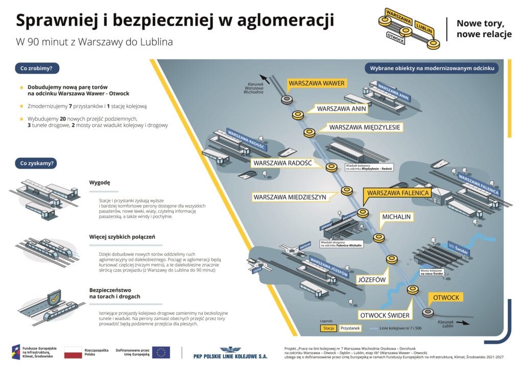 Dodatkowo w Wawrze, Radości i Józefowie powstaną tunele i przejścia pod torami dla pieszych, a wzdłuż linii zamontowane zostaną kilometry ekranów akustycznych, które mają poprawić komfort mieszkańców.