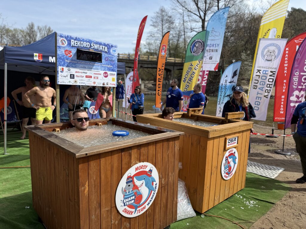 Dzisiejsze wydarzenie zrzeszyło morsów z całej Polski, którzy w trakcie jego trwania ustanawiali rekord w najdłuższej sztafecie w morsowaniu równoległym. Zadaniem uczestników było wejście do wanny z wodą w minusowej temperaturze i lodem i będąc zanurzonym po szyję, przesiedzenie w niej trzech minut. Każdy wchodził jednocześnie z drugą osobą. W takiej formie morsowania udział wzięło około 150 osób. Z zawodnikami siedzącymi w baliach, rozmawiała reporterka Radia Kolor, Maja Gasperowicz.