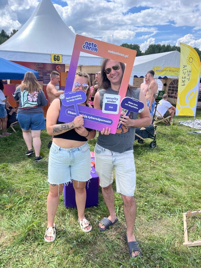 Czy można wyobrazić sobie lepsze miejsce na chrzest bojowy akcji społecznej niż właśnie festiwal Pol’and’Rock? Odwiedziło nas mnóstwo osób, w różnym wieku, z różnym poziomem cyberodporności i wiedzy o cyberbezpieczeństwie. Odbyliśmy wiele ciekawych rozmów, ale przede wszystkim mieliśmy okazję zaobserwować na żywo, jak nasze społeczeństwo radzi sobie z najpopularniejszymi cyberzagrożeniami. Wnioski? Przed nami dużo pracy, ale co istotne, ludzie są na nią otwarci. Wierzymy, że Netochron to odpowiedź na powszechną potrzebę wzmocnienia cyberodporności obywatelskiej – mówi Iwona Brzózka-Złotnicka, prezeska Stowarzyszenia Cyfrowy Dialog koordynującego akcję Netochron.