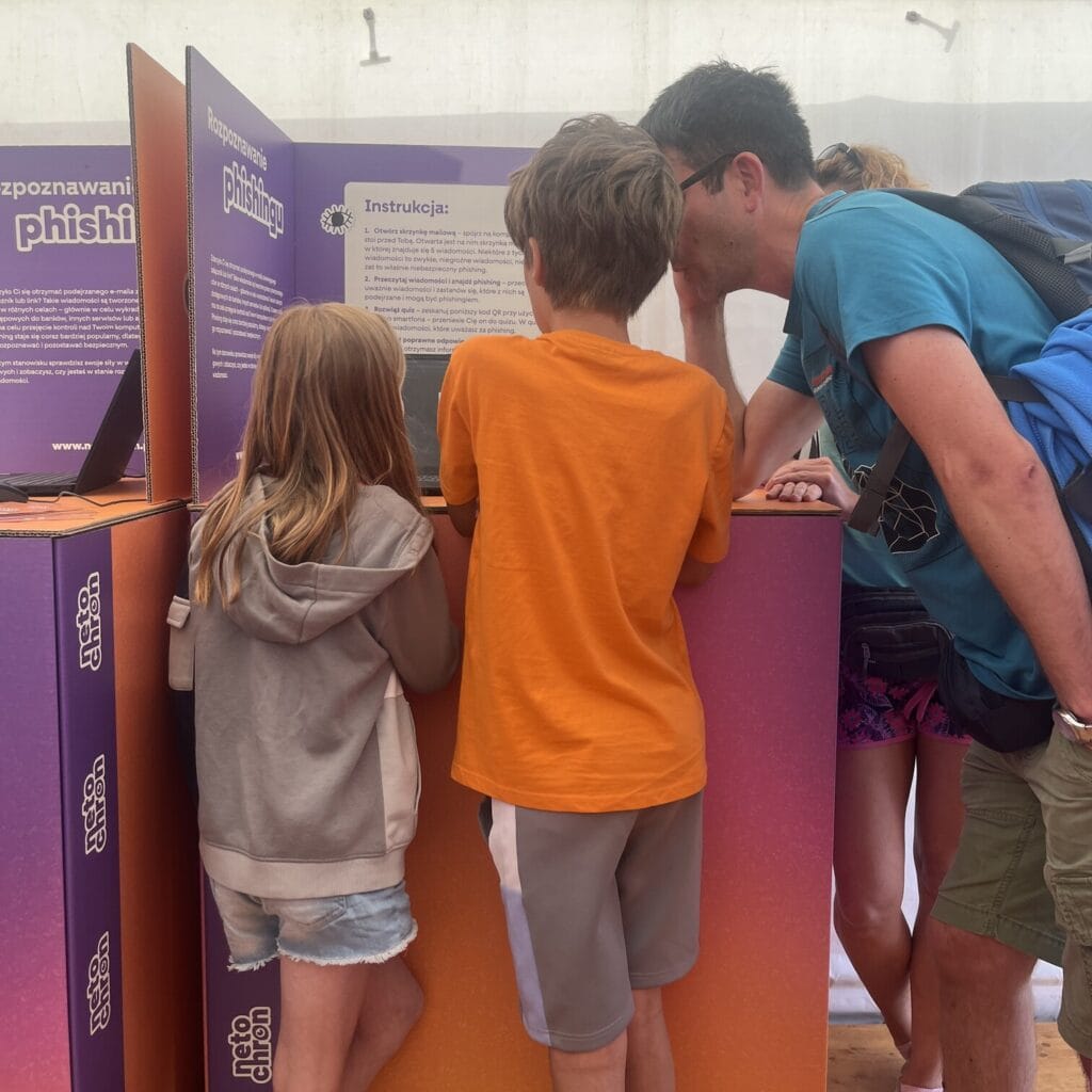 06/08/2025 – W tym roku na festiwalu Pol’and’Rock po raz pierwszy pojawiło się laboratorium cyberodporności. Na stoisku akcji Netochron odwiedzający mogli zamienić się w detektywów ds. phishingu, wymyślić hasło, którego złamanie zajęłoby sto milionów lat, a nawet przekonać się, jak łatwo wykraść dane za pomocą pozornie zwykłego pendrive’a.