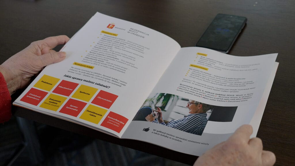 Uczestnicy otrzymują również specjalnie przygotowaną broszurę edukacyjną, która w prosty sposób wyjaśnia, jak krok po kroku obsługiwać cztery najważniejsze e-usługi Warszawy. Materiał jest dostępny również bezpłatnie dla każdego w formie elektronicznej na stronie projektu digitalfestival.pl/nowoczesny-senior-w-warszawie, a jego papierowa wersja rozdawana jest podczas szkoleń i dystrybuowana w punktach partnerskich, m.in. na Uniwersytetach Trzeciego Wieku w wybranych dzielnicach.
