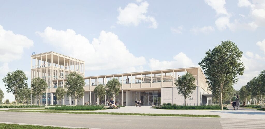 Nowy basen na Białołęce będzie miejscem zarówno dla sportowców, jak i dla rodzin z dziećmi. Obok części sportowej znajdzie się basen rekreacyjny z biczami wodnymi, gejzerami i leżankami, a także blok saun i przestrzeń wypoczynkowa z widokiem na zieleń.