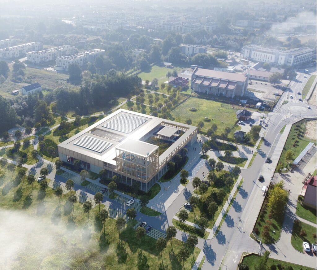 Nowa pływalnia przy ul. Ostródzkiej została zaprojektowana z myślą o środowisku. W obiekcie zastosowane zostaną rozwiązania proekologiczne i energooszczędne – m.in. panele fotowoltaiczne, odzysk ciepła z wody i system retencji deszczówki.