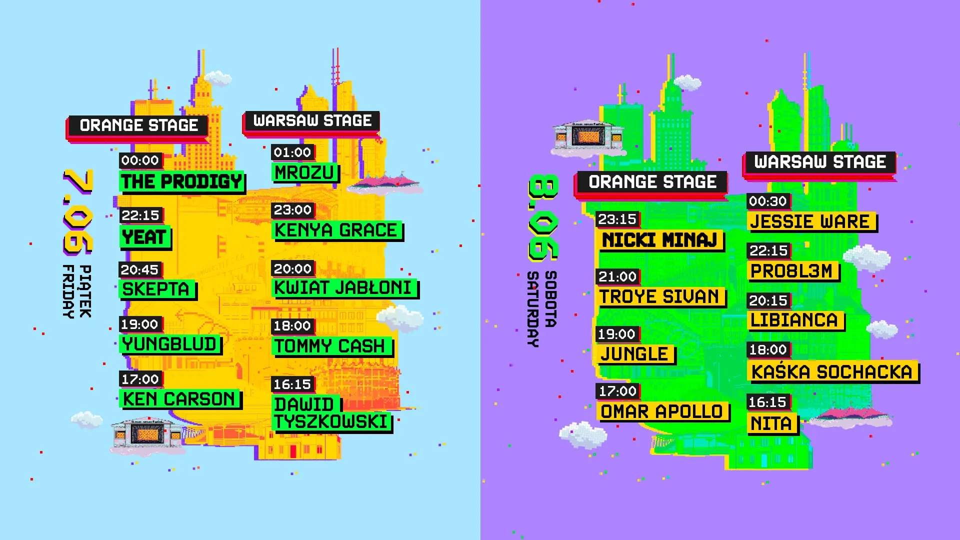 - 8 czerwca (sobota): 14:00 – 1:30 (karnety i bilety na drugi dzień)