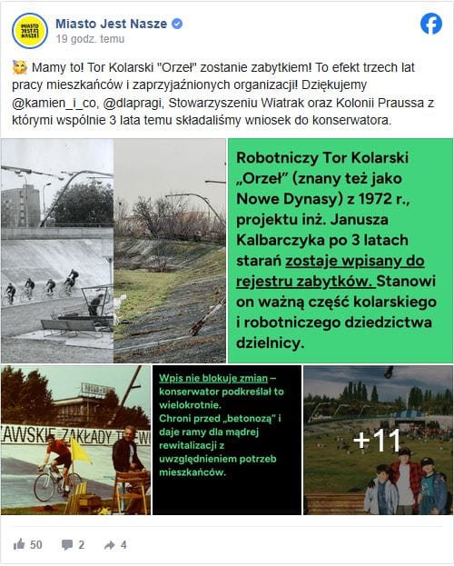 Tor kolarski „Orzeł” przy ulicy Podskarbińskiej na Pradze Południe oficjalnie zostanie zabytkiem. To finał wieloletnich starań aktywistów ze Stowarzyszenia Miasto Jest Nasze oraz lokalnych organizacji, które od trzech lat zabiegały o ochronę tego miejsca. Co dalej stanie się z tym terenem?