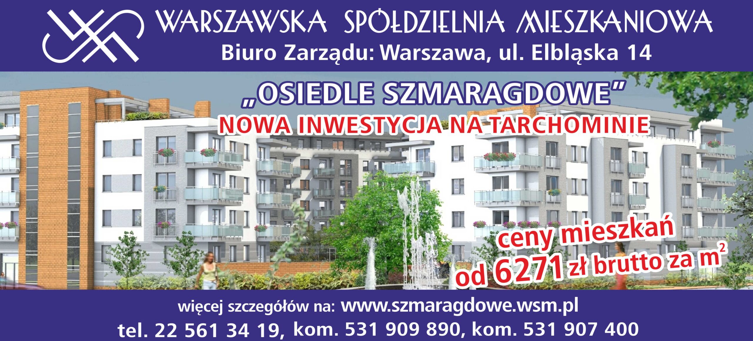 WSM zaprasza wszystkich zainteresowanych do zakupu mieszkania w wymarzonym osiedlu Szmaragdowym na Tarchominie, gwarantuje solidne wykonanie i dotrzymanie warunków umowy względem wszystkich, którzy decydują się na kupno mieszkania. Więcej informacji na www.szmaragdowe.wsm.pl oraz w czasie drzwi otwartch WSM, które odbędą się w sobotę 10 czerwca.