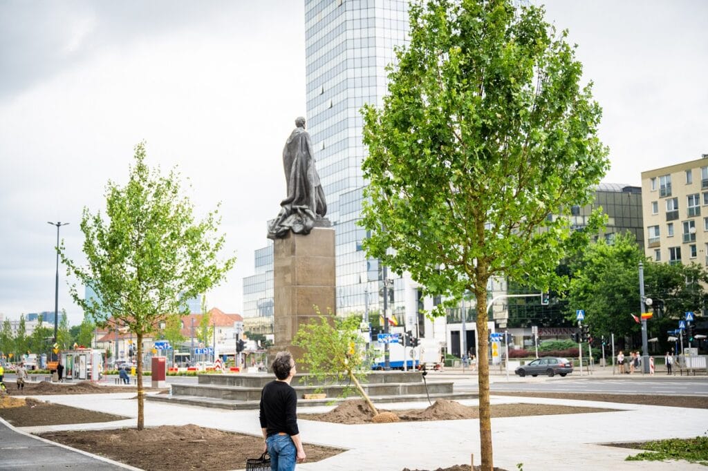 Docelowo nasadzonych zostanie łącznie około 30 drzew – do tej pory na plac przywieziono 16 z nich, w tym 12 klonów polnych i 4 wiśnie piłkowane. Drzewa, uzgodnione z miejskim konserwatorem zabytków i Zarządem Zieleni, są mniejsze niż te sadzone na placu Centralnym, co umożliwia ich bezpieczne posadzenie nawet przy wyższych temperaturach.