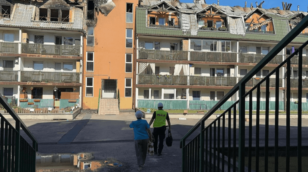 Przez kolejne dni policjanci prowadzili oględziny, przesłuchania świadków oraz pomagali mieszkańcom w dostępie do mieszkań, by mogli zabrać najpotrzebniejsze rzeczy.