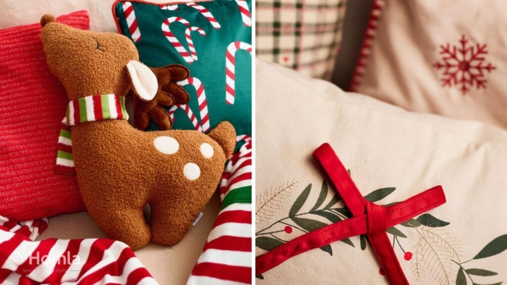 - Poduszka świąteczna — Poduszka w zabawnym kształcie to ciekawy prezent do 100 zł. To wyjątkowy prezent, który stanie się wesołym i świątecznym akcentem w każdym pomieszczeniu.