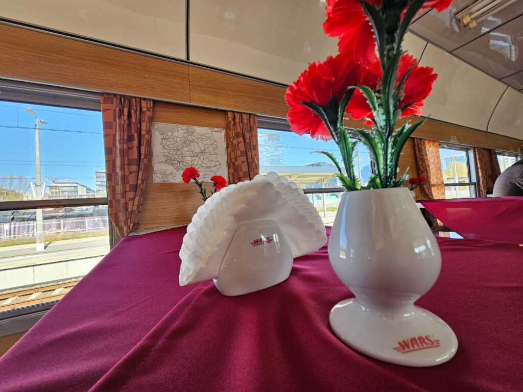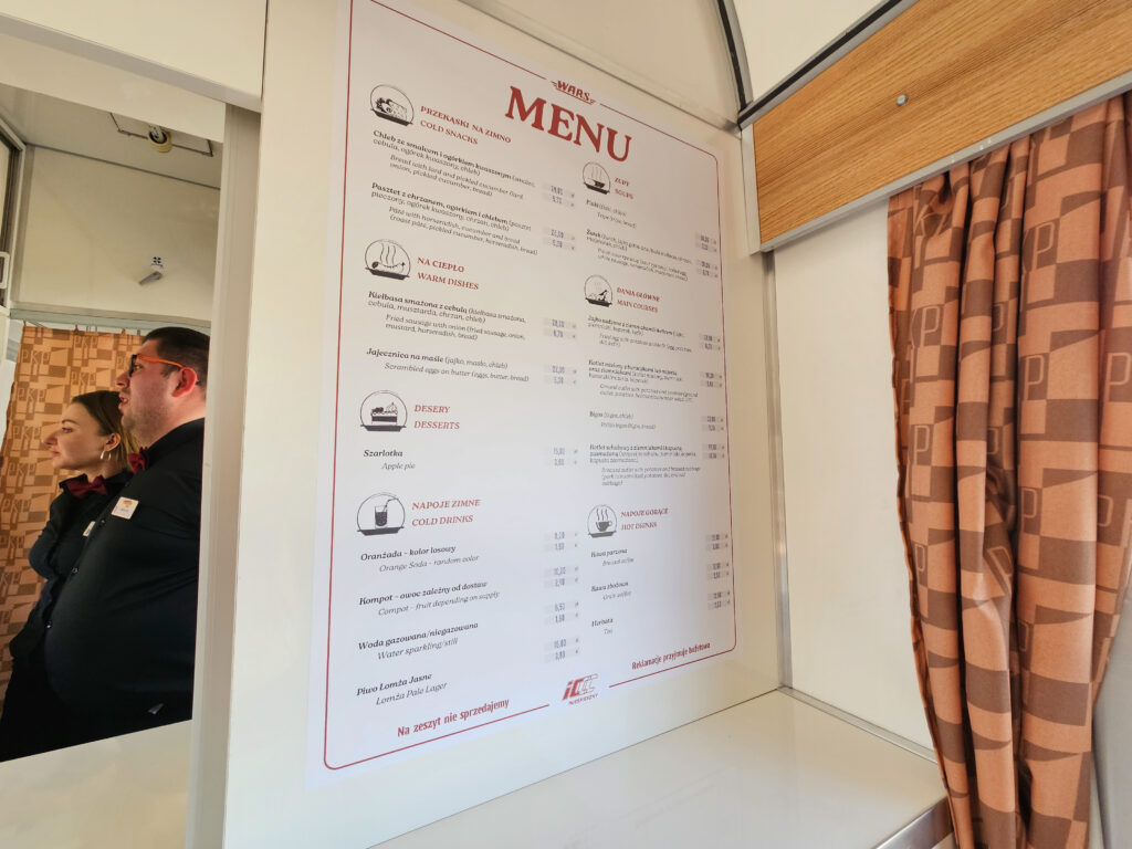 Podróż w czasie nie byłaby pełna bez odpowiedniej oprawy kulinarnej. Wagon gastronomiczny WARS serwuje na pokładzie IC Nieśpieszny specjalne menu, odwołujące się do tradycji. Pasażerowie znajdą w nim klasyczne przekąski i dania obiadowe, które dziś rzadko goszczą w nowoczesnych pociągach, w tym m.in. kiełbasę smażoną z cebulką, czy pasztet z chrzanem, ogórkiem i chlebem.