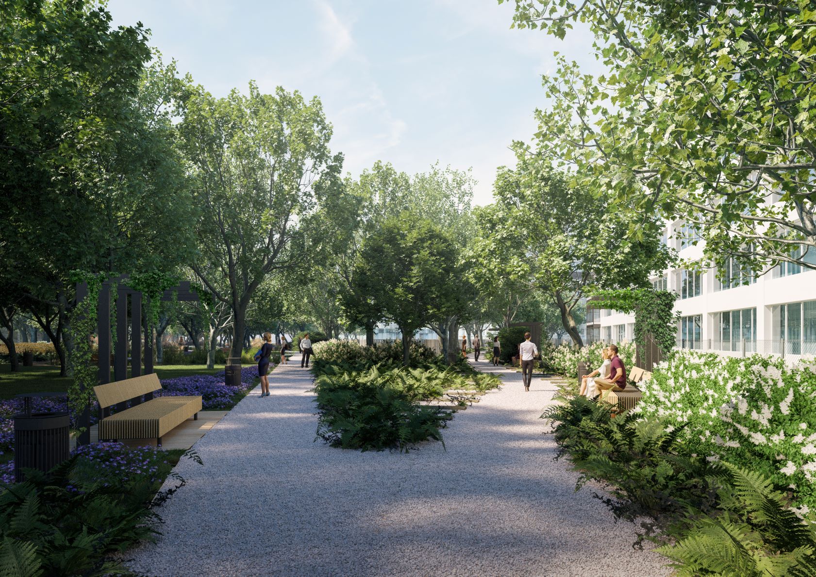 Niezagospodarowany teren przy ulicy Suwak na Służewcu, pomiędzy blokami, biurowcami, hotelami i linią kolejową, wkrótce zamieni się w park linearny. Teren ma 20 tys. mkw. Ma na nim rosnąć bujna zieleń i pojawić się aż 50 drzew, w tym ozdobne odmiany jabłoni, klony i lipy. Powierzchnię 4200 mkw. zajmą krzewy, 3200 mkw. – byliny i aż 5200 mkw. – trawnik oraz łąka kwietna, na których będą mogli odpoczywać mieszkańcy. Łąka kwietna będzie także przyciągać owady zapylające. Mają pojawić się tam gatunki roślin takie jak przetacznik, krwawnik, szałwia, poziomka, czyściec, irys i mięta. Będą także ozdobne trawy: śmiałek darniowy i turzyca oraz krzewy: dereń, jaśminowiec, tawuła, dzika róża, bez czarny, lilak, kalina i pęcherznica. Wyróżniać to miejsce ma runo z bluszczu pospolitego, obok którego będzie można przejść mostem.