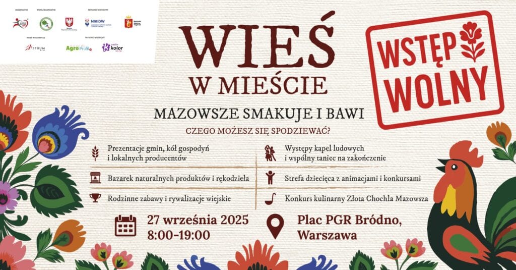 27 września na placu PGR Bródno odbędzie się wyjątkowe wydarzenie „Wieś w Mieście – Mazowsze Smakuje i Bawi”, które przygotowała Fundacja Active Life we współpracy ze Stowarzyszeniem Koło Gospodyń Miejskich „Warszawska Koniczynka”. Organizatorzy chcą przybliżyć mieszkańcom Warszawy i Mazowsza codzienne życie wsi – jej tradycje, kulinaria oraz dorobek kulturowy.