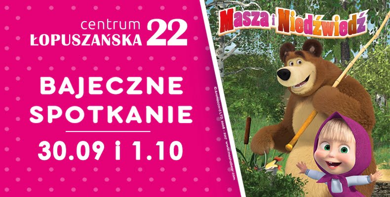 30 września i 1 października 2017 roku w godzinach 12:00-18:00 Centrum Łopuszańska 22 odwiedzi sympatyczny duet tytułowych bohaterów bajki Masza i Niedźwiedź! Przewidziano liczne atrakcje, podczas których dzieci będą mogły spędzić niezapomniane chwile w towarzystwie swoich idoli.