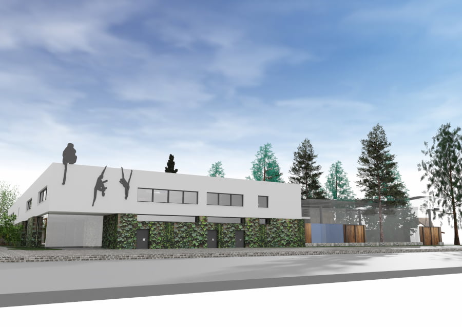 Rośliny rosnące na zewnątrz i wewnątrz budynku mają stworzyć spójny kompleks zieleni. Część elewacji parteru będzie pokryta stalowymi kratami, które zostaną obsadzone pnączami. Elewację drugiej kondygnacji pokryje strukturalny tynk w jasnych barwach.