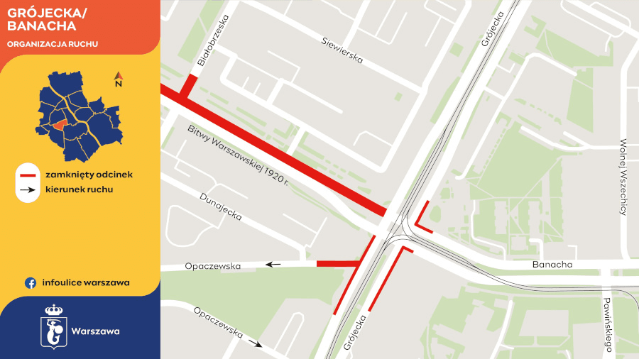 Dobre informacje również dla kierowców. Ci odzyskają przejazd ulicą Banacha do skrzyżowania z Grójecką, gdzie do dyspozycji będą mieli dwie jezdnie. Co więcej, otwarta zostanie druga jezdnia ulicy Grójeckiej.