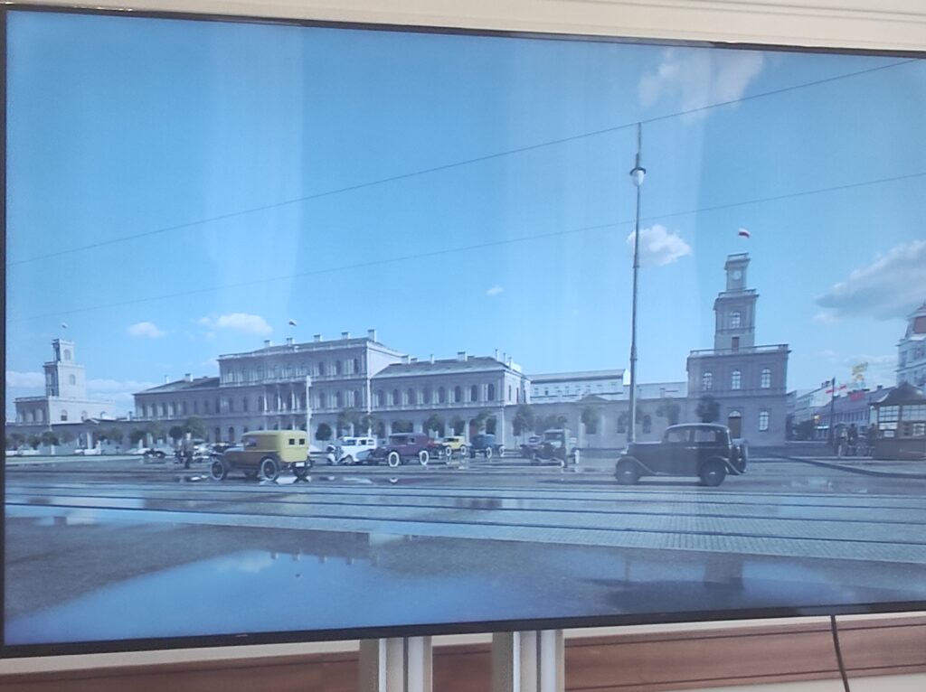 Włączając na swoim telefonie film, stojąc pod hotelem Metropol przodem do domów centrum na rekonstrukcji nie zobaczymy m.in. pałacu kultury. Nie ma wielu obiektów, które stoją tam dziś.