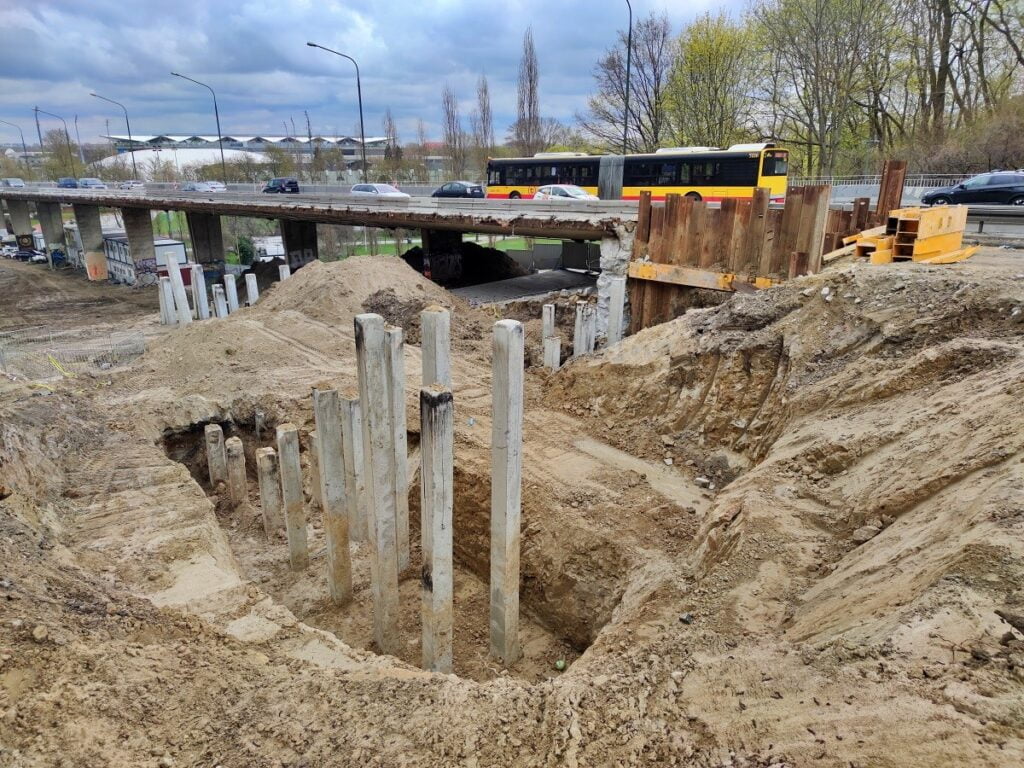 Rozbiórka północnego wiaduktu dobiegła już końca. Kierowcy jadący Trasą Łazienkowską mogą nie zdawać sobie sprawy, że w miejscu wyburzonego obiektu powstają już pierwsze elementy nowej konstrukcji – mury oporowe, fundamenty i podpory przyszłego wiaduktu, a przy ul. Rozbrat przechodnie mogą już zaobserwować zarys pochylni dla rowerów.