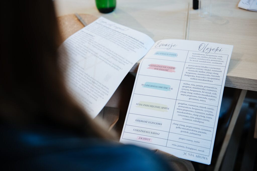 Uczestnicy mogli następnie sprawdzić, jak różne aromaty wpływają na nastrój, koncentrację i poczucie spokoju. Testowały cytrusy, delikatne kwiatowe nuty i wyciszające aromaty drzewne, zauważając, że każdy zapach może działać inaczej w zależności od potrzeb organizmu, chwili i indywidualnej wrażliwości.