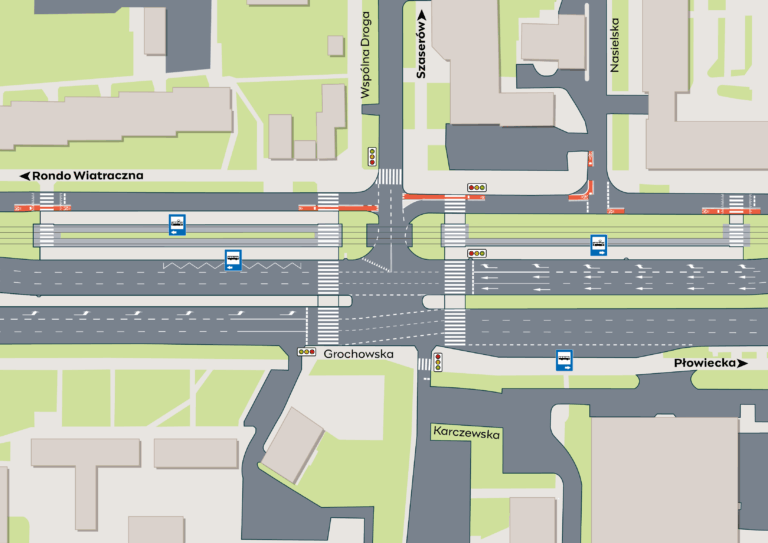 Na skrzyżowaniu z Zamieniecką i Pl. Szembeka kierowcy jadący Grochowską od strony Węzła Marsa będą mieli do dyspozycji wydzielony pas do skrętu w lewo w Zamieniecką (wraz z wydzieloną sygnalizacją świetlną) oraz w prawo, w kierunku Chłopickiego. Jazda na wprost będzie możliwa z dwóch pasów ruchu ogólnego. Z kolei kierowcy jadący Grochowską od strony Ronda Wiatraczna otrzymają wydzielony prawoskręt w Zamieniecką oraz dwa pasy do jazdy na wprost. Dodatkowo, przejścia dla pieszych przez Zamieniecką oraz przez wschodnią stronę Grochowskiej zostaną uzupełnione o przejazdy rowerowe.