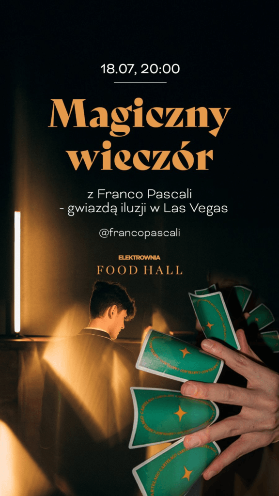 W piątek, 18 lipca o godzinie 20:00, w Elektrownii Powiśle wystąpi Franco Pascaliego – jednego z najbardziej uznanych magików i cardistów na świecie, który zaprezentuje swoje ekskluzywne show w przestrzeni Food Hallu.